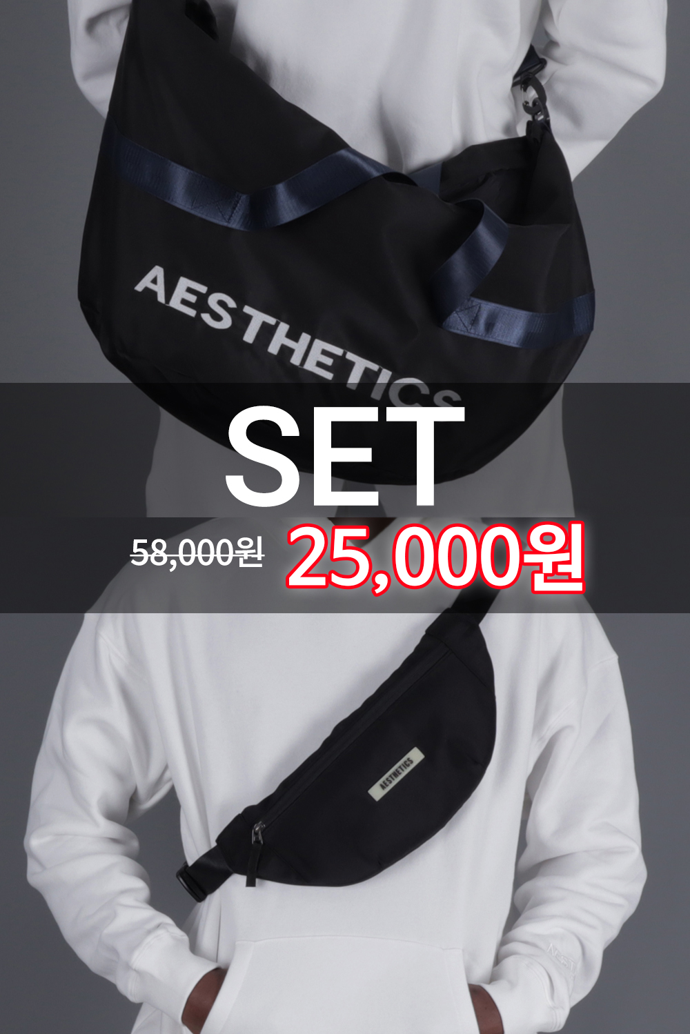AESTHETICS 스포츠 메신저백 슬링백 미니힙색 2종 세트